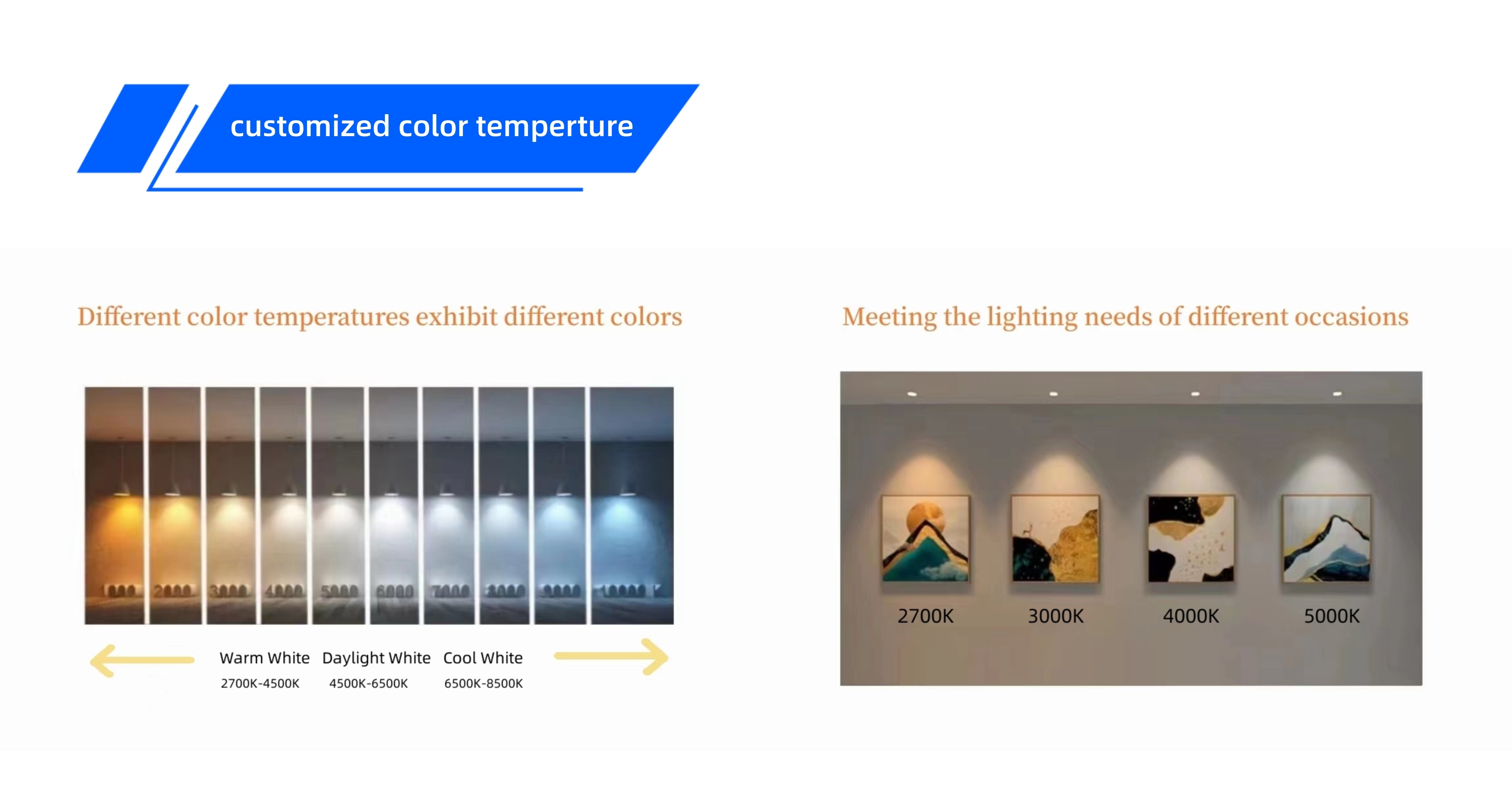 Color temperature determines the tone of light and is measured in Kelvin (K).