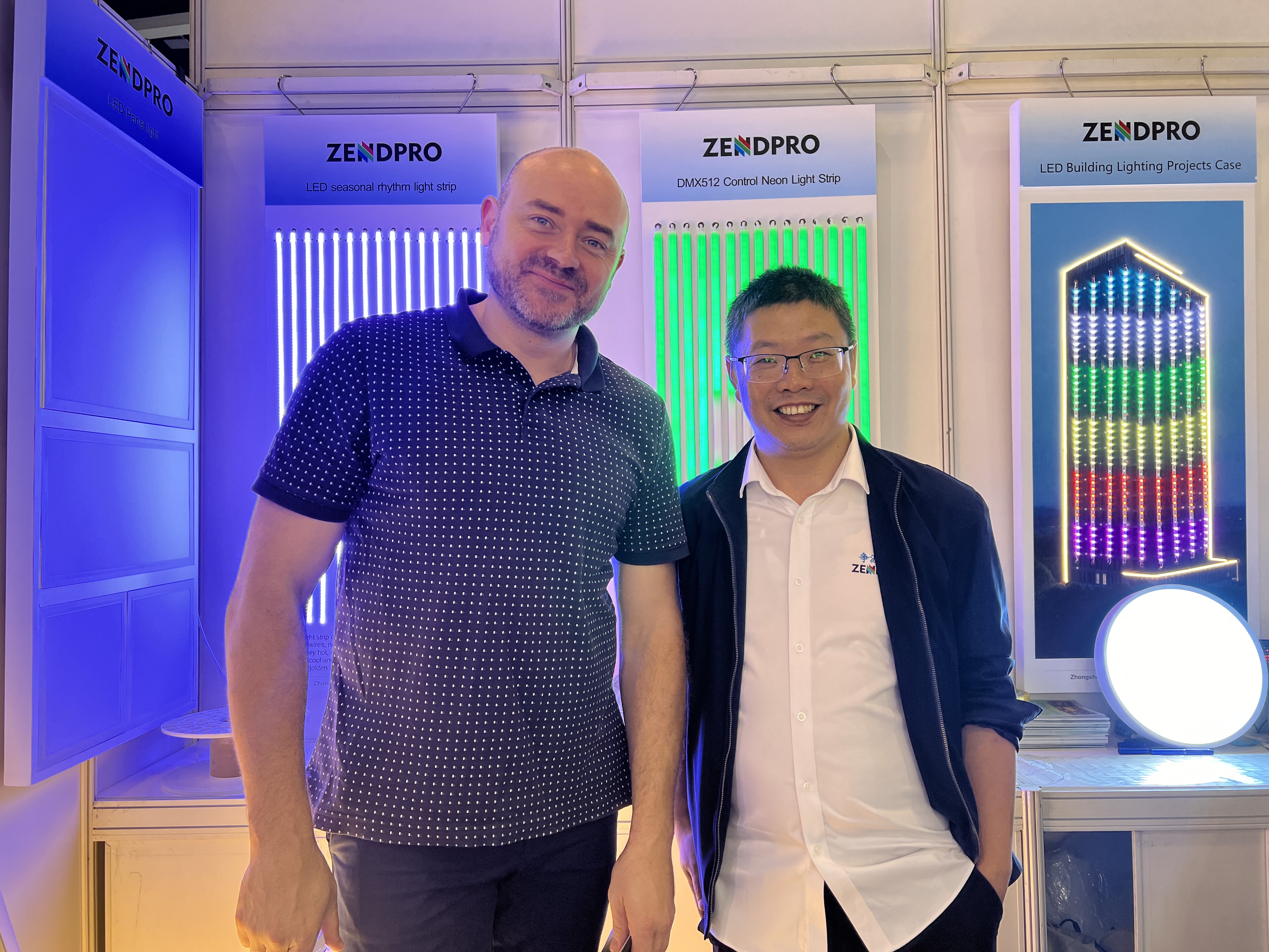 During the exhibition, ZENDPRO presented its latest flexible LED strips, tunable white series, and intelligent lighting control solutions. The newly upgraded DIY Free-Cut LED Strip and RGBW Dynamic Series drew the attention of several buyers who stopped by the booth for discussions and product demonstrations. These visitors showed strong interest in ZENDPRO’s custom design capabilities and technical expertise in professional lighting applications.