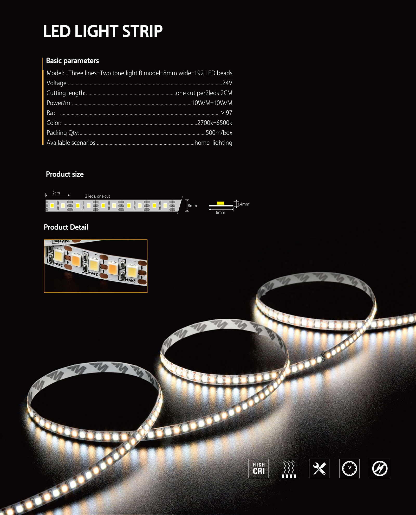 | Model NO. | ZD2835-192P-24V-8mm/12 lamp beads cut once | Emitting Color | Warm White/Nature White/White |